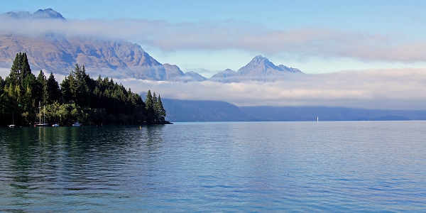 オークランドを経て、クィーンズタウンに着く。19世紀後半のゴールドラッシュで開拓された街、そびえたつ山々に囲まれて、静かな湖面をたたえたワカティプ湖、その湖畔を取り囲むように街ができた。女王にふさわしい街ということでクィーンズタウンと名付けられた。ミルフォードトラックの旅はここからはじまり、ここで終わる。